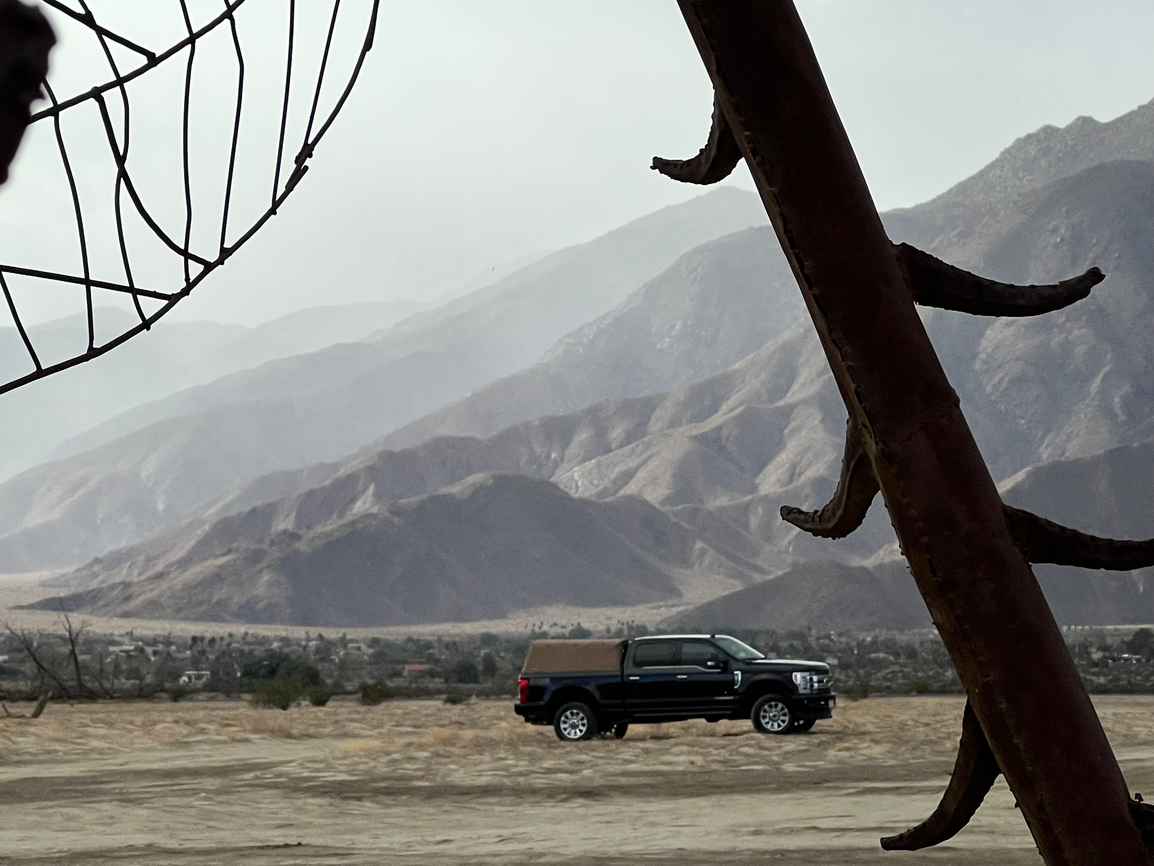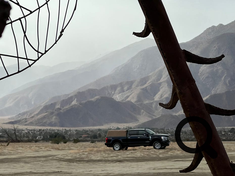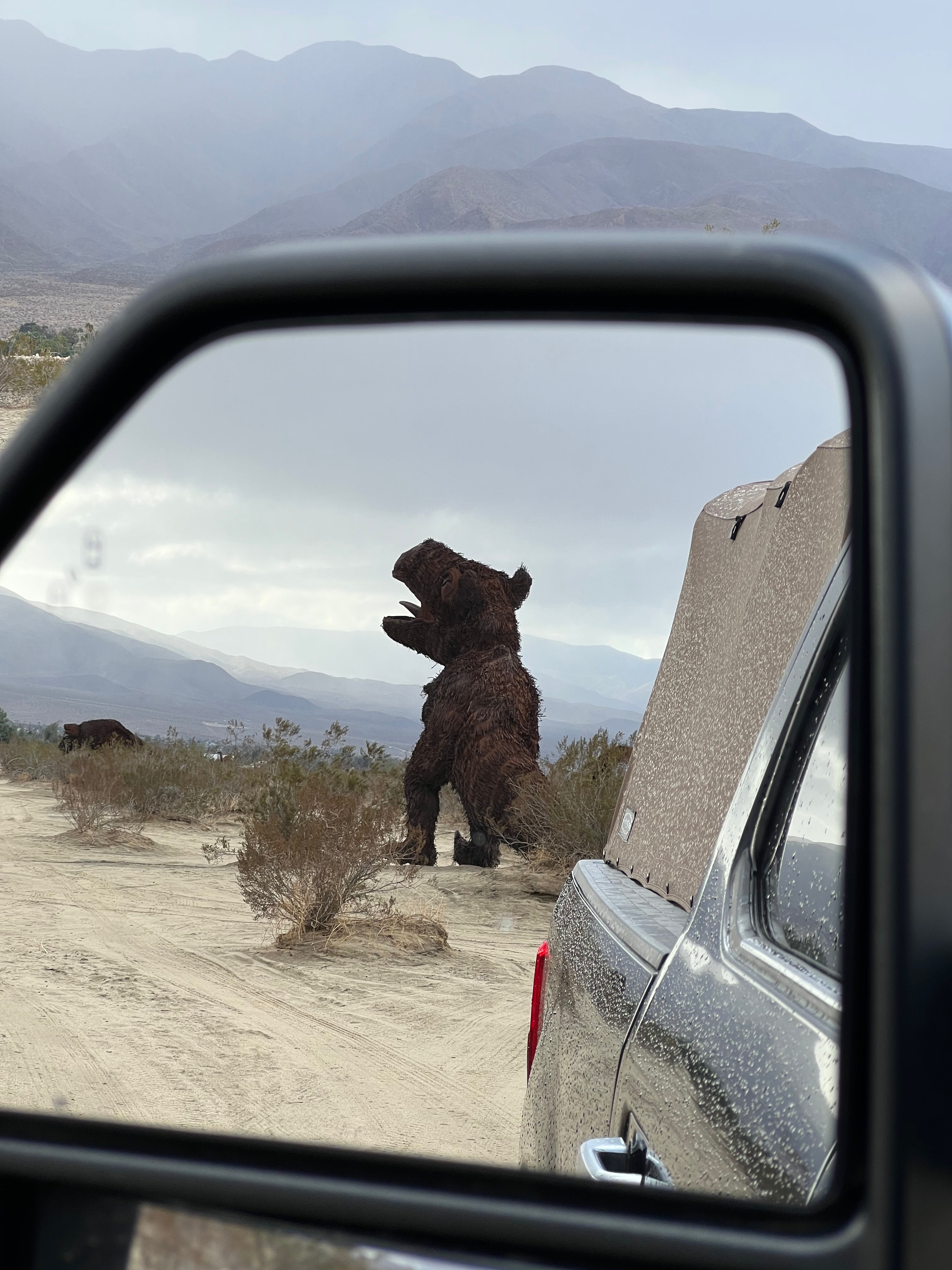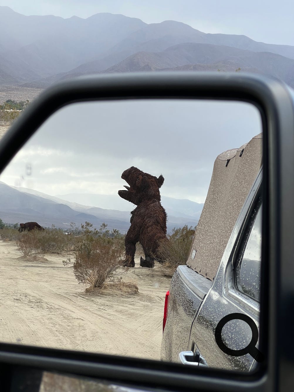 Borrego Springs is an out of the way destination in California which is not all that easy to get to but totally gratifying once you get there. The majestic mountains surrounding this desert oasis are mesmerizing and the imposing sculptures dotting the landscape will entertain for hours. The journey getting there is one of scenic beauty. We will go back again and again!
