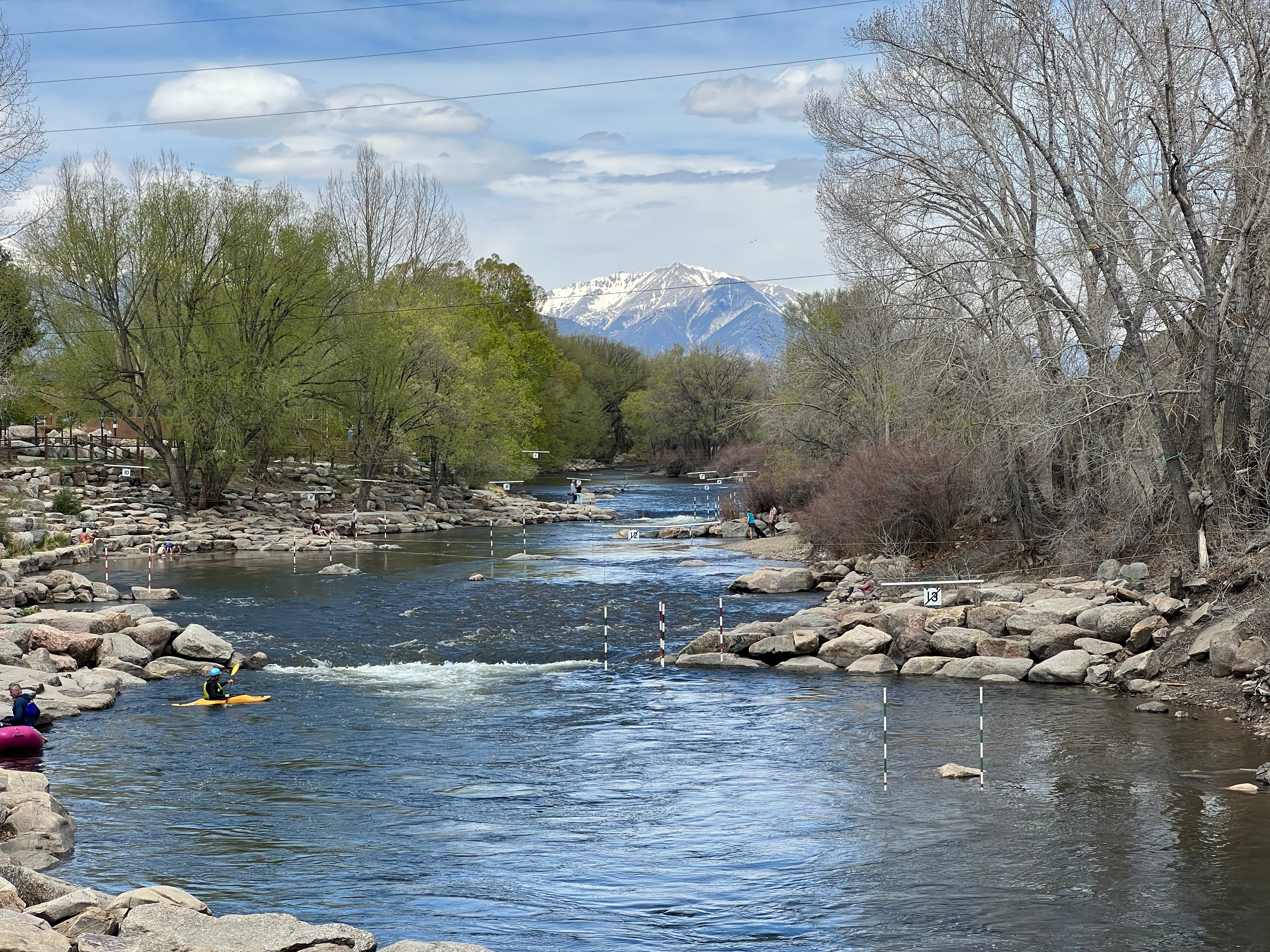 Buena Vista and Salida have a backdrop with some of the highest peaks in Colorado. The headwaters of the Arkansas River stem from the eastern drainage of the Sawatch Range, which runs through here. We enjoy hiking near Twin Lakes and shopping and strolling the streets of Salida and the main drag in Buena Vista. A drive up to accessible mountain vistas is always fun too. Ask James about Independence Pass that one time. Right in the middle of it all, Browns Canyon National Monument offers rafting, hiking, camping, etc. The pups had a fun time hiking in the mountains and around the lakes with us.